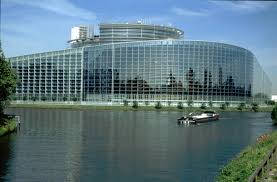 Hier sind wir mit dem Schiff rund ums Europaparlament gefahren.